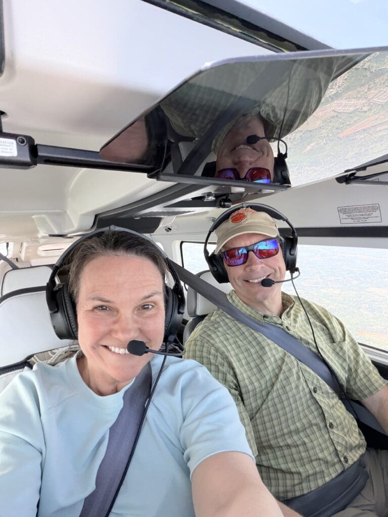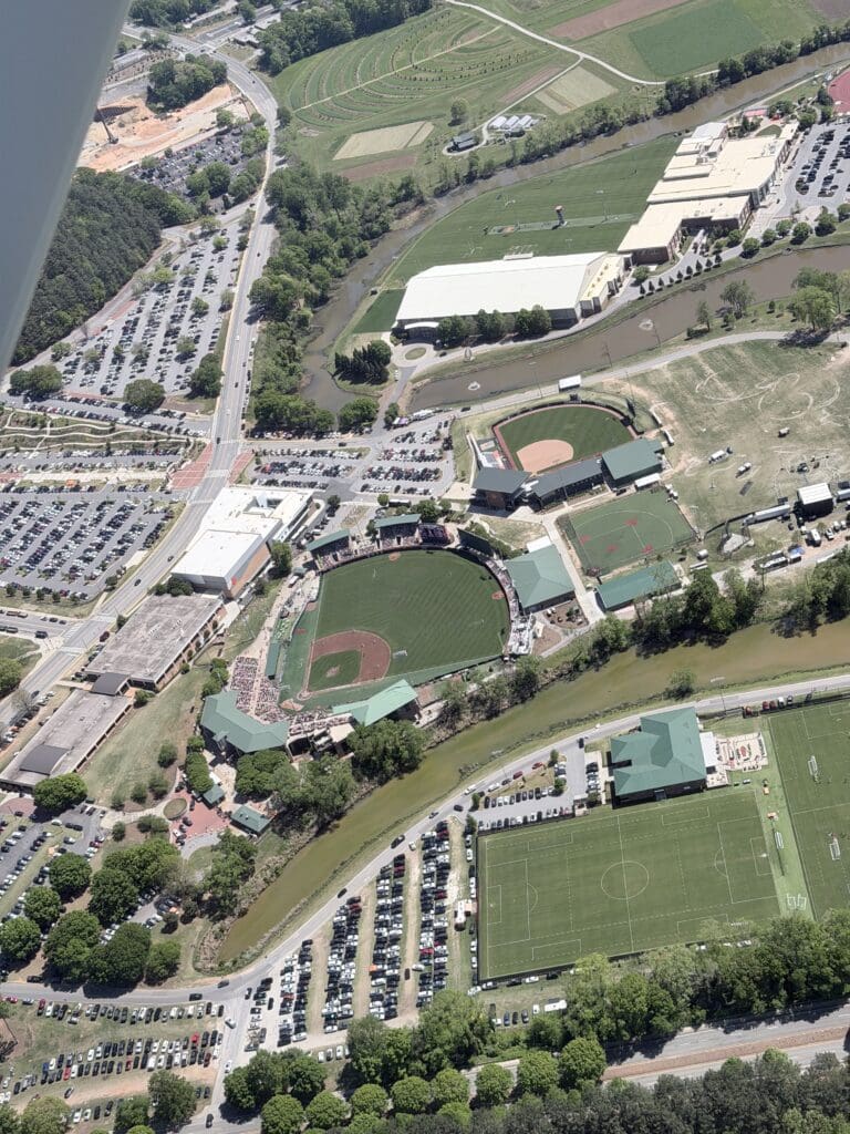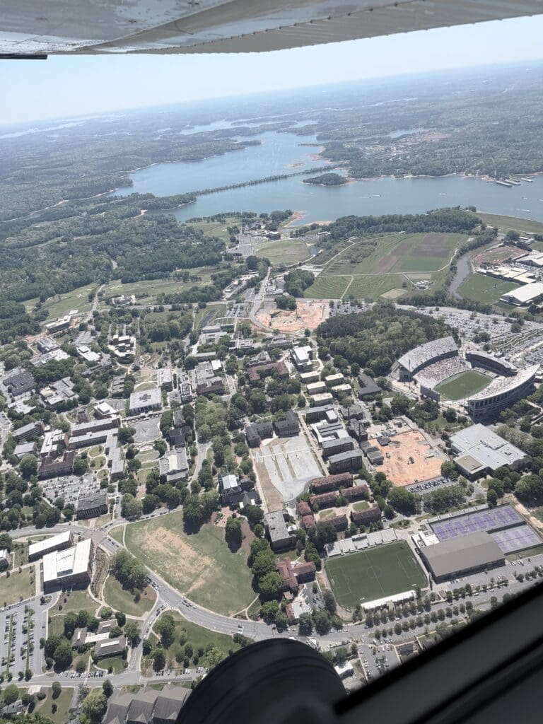 By Saturday, Chad and I flew over to Clemson—because it was a beautiful day and because apparently, we now check on our children via small aircraft like extremely casual helicopter parents.