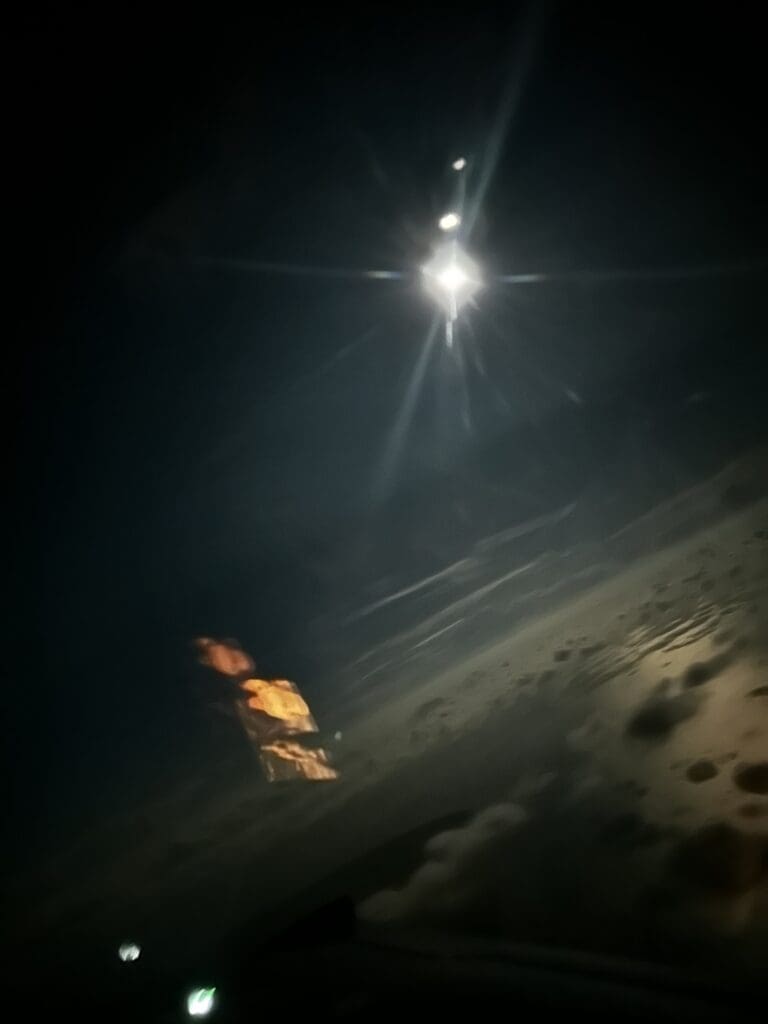 Now I’m doing mental math about how fast we need to get back to the FBO before it closes at 10. We made it just in time, Chad ran through his checklists, we loaded in, and off we went—back into the rainy gray night. There was a full moon, which might’ve been romantic if it hadn’t been hiding behind us and reflecting off the clouds in the eeriest, ghost-story kind of way.